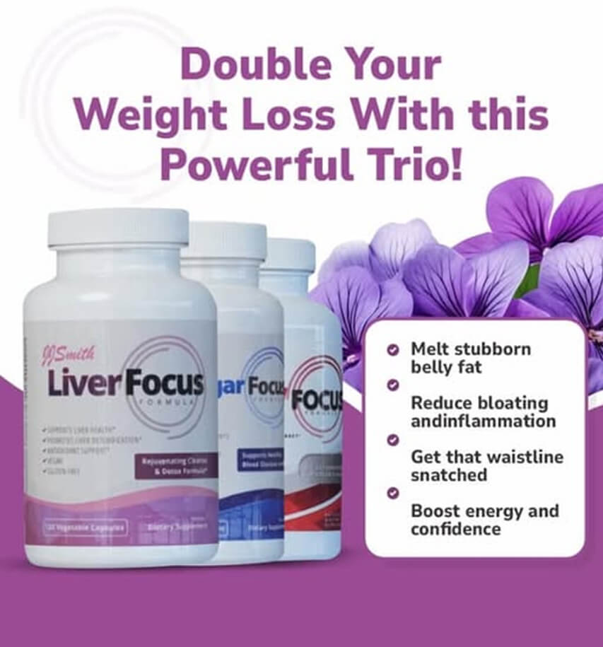 24.4 pounds and roughly 3 inches in about 2 months (10 weeks)! I love the results and I will continue to use Liver Focus and Blood Sugar Focus.”